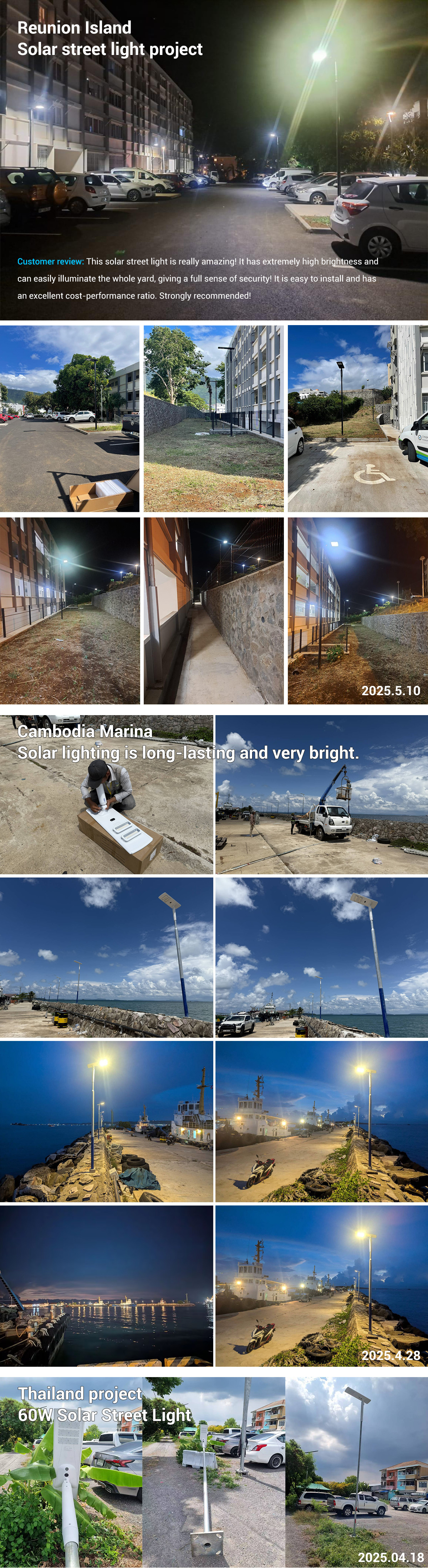 Since their installation, our solar street lights have become a key element in nighttime traffic illumination. Their stable, bright light has reshaped the nighttime road environment. Their low-light-pollution design complements Saipan's tropical cityscape, while their intelligent lighting control precisely responds to the changing day and night cycles. They not only ensure the safe passage of pedestrians and vehicles, but their solar-powered system also contributes to the local green energy landscape, adding "smart light" to Saipan's roads. Their superior product performance demonstrates the practical value and ecological significance of lighting solutions.